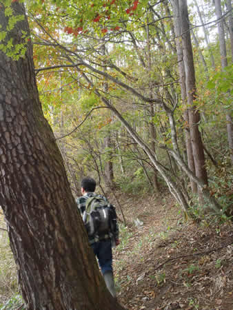 林道脇とはいえ、杉林の中でかなり日当たりが悪い場所のせいか、葉が異様に広くて別の花かと思ってしまうほど。