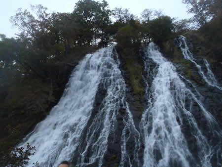 今回お世話になる、知床の入り口の町ウトロが近づくと、道路沿いからこんな見事な滝。