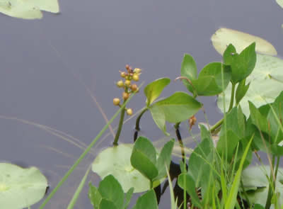池塘にミツガシワの実。